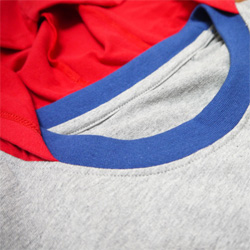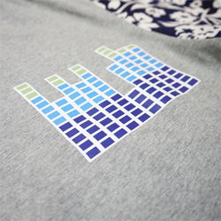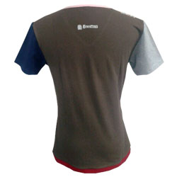 Side: Logo full color badge is sewed on the side. Back: Logo in discreet grey is printed on the back between the shoulders.